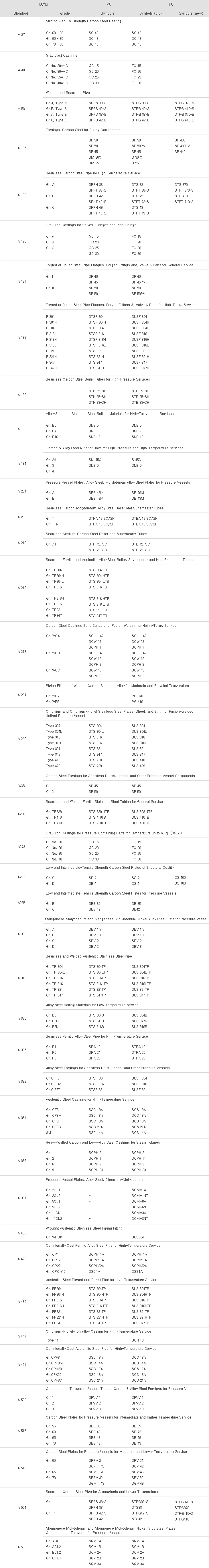 Material Standard Comparison Table (ASTM-KS-JIS)